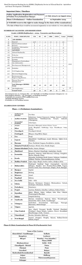 The National Bank for Agriculture and Rural Development (NABARD) has announced the recruitment of Assistant Manager Grade A for various posts in 2024. Interested candidates can apply online from July 27, 2024, to August 15, 2024. For detailed information regarding eligibility, post details, selection procedure, vacancy, age limit, pay scale, and other relevant details, please read the notification before applying.